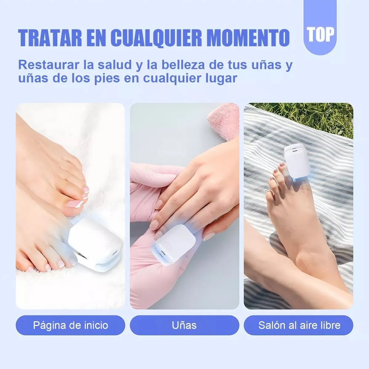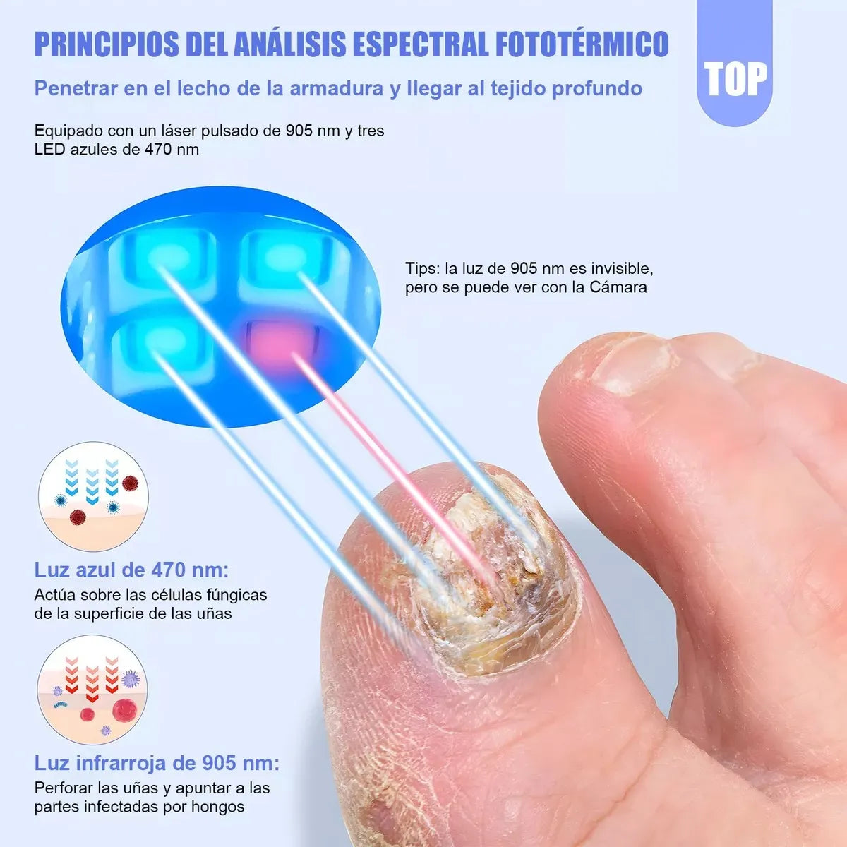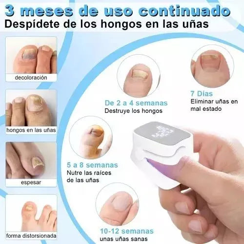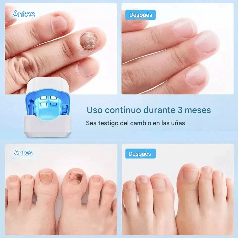 ✅ Combina luz azul e infrarroja: trata desde la raíz del hongo. 💡