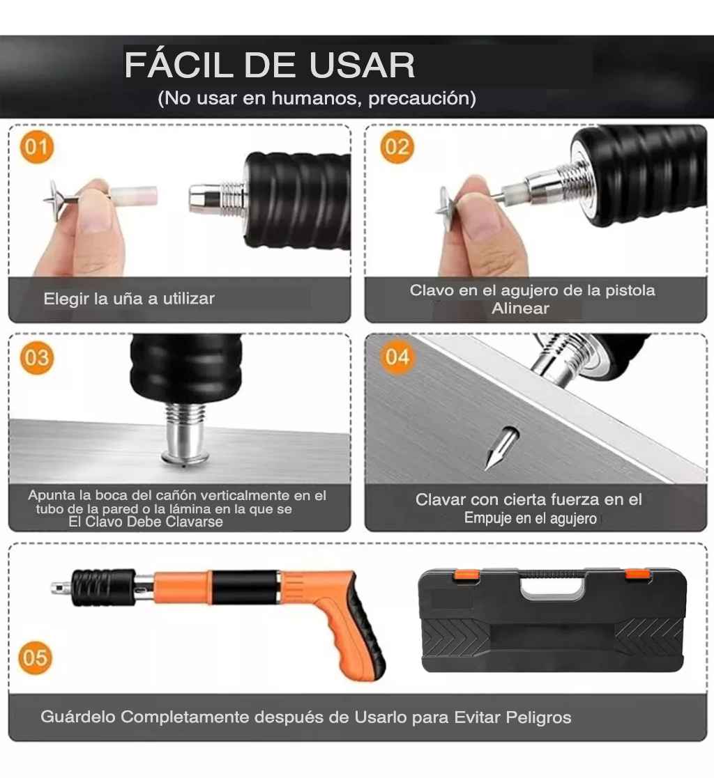 Compacta, liviana y portátil, la ClavoExpress mejora tu eficiencia en trabajos de decoración y mejora del hogar. ¡Incluye accesorios de seguridad! 🛠️✨
