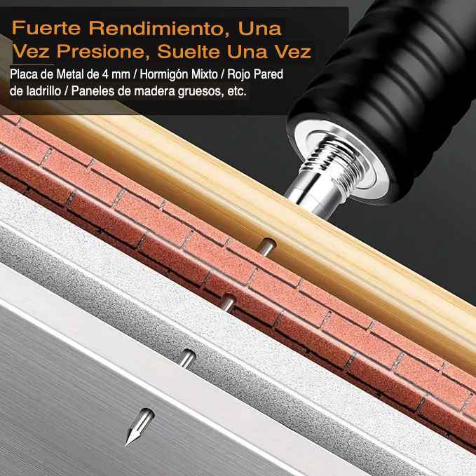Con fuerte penetración y bajo nivel de ruido, esta pistola es perfecta para instalaciones de estanterías, monitores, tuberías y más. ¡Operación con una sola mano! 🖐️